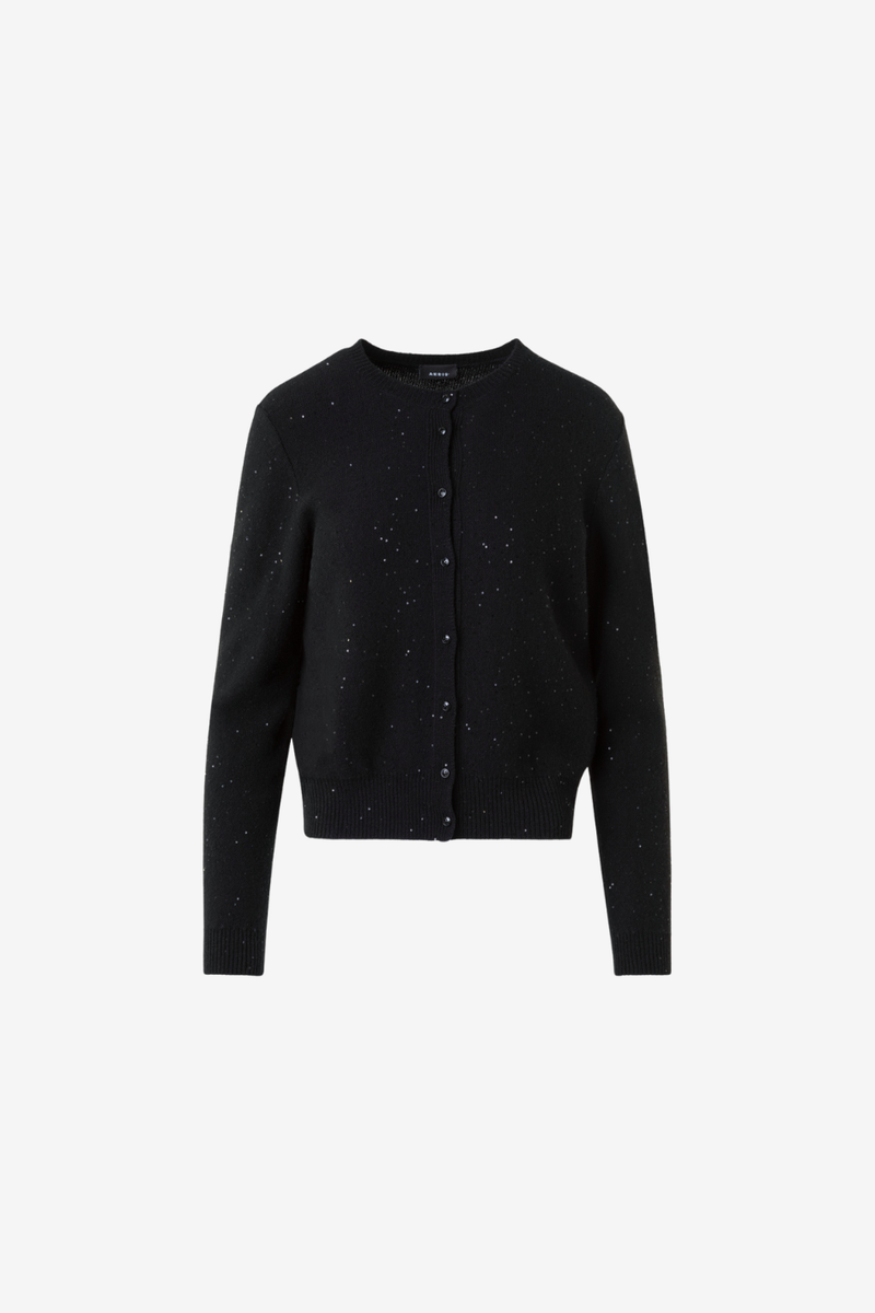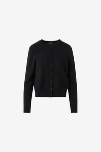 Knit Cardigan in Wool Cashmere with Tonal Sequins - 36 / true black