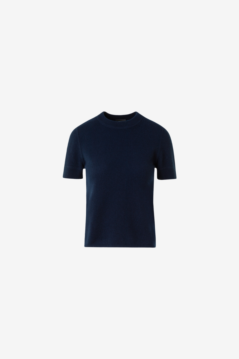 Kurzärmeliger Pullover aus reinem Kaschmir mit Rundhalsausschnitt und gerader Passform. Feiner Strick mit weichem Griff.