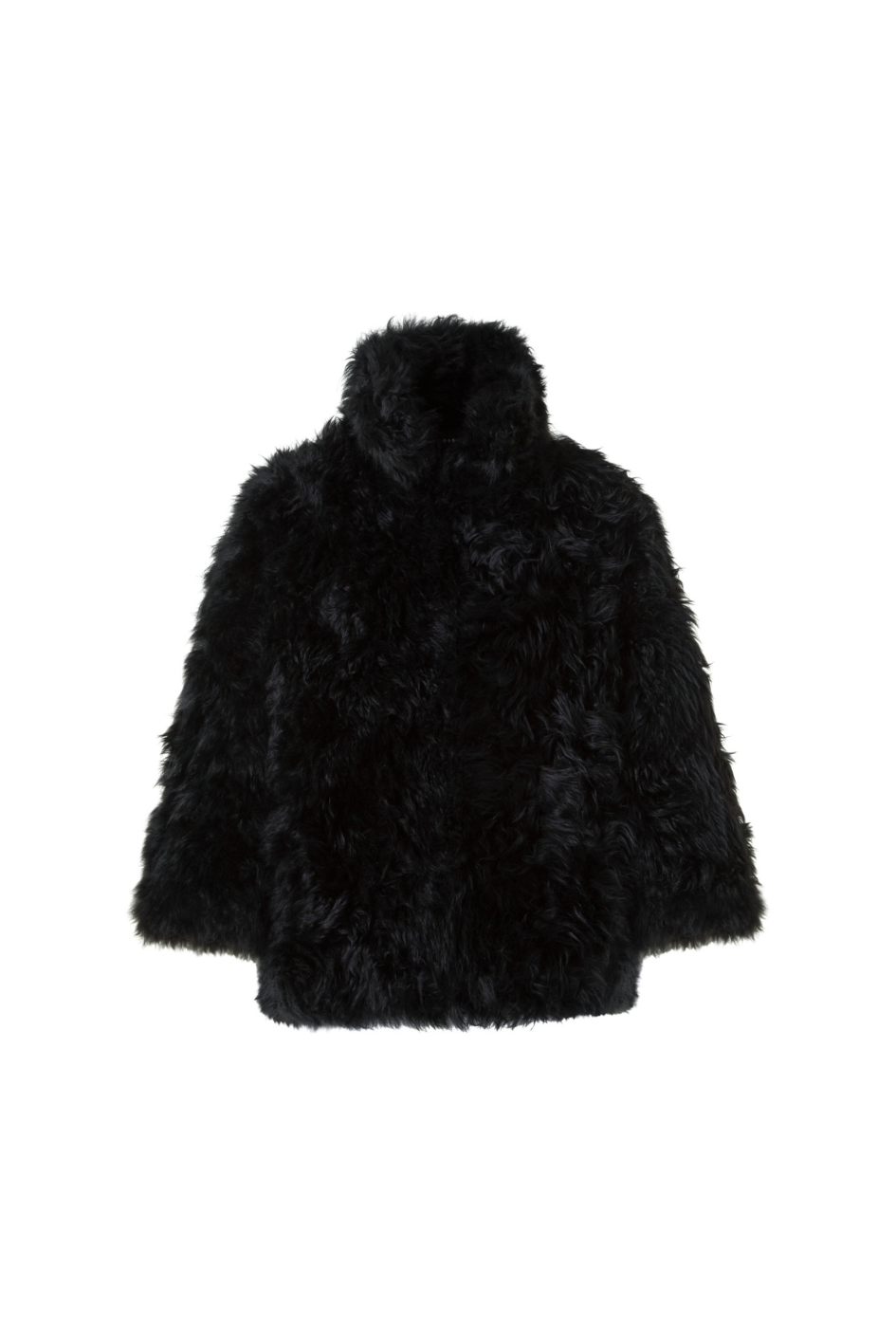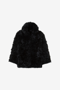 Jacke aus langhaarigem Kid-Goat-Shearling mit kastiger Silhouette. Das weiche, voluminöse Material verleiht dem Modell einen ausdrucksstarken Look.