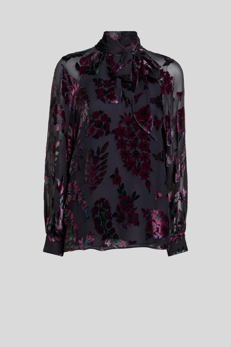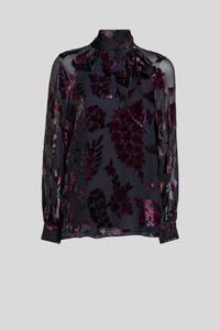 Sheer Floral Velvet Blouse with Bow Sale