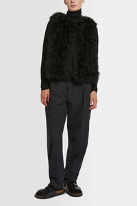 Diese ärmellose Weste aus schwarzen Federn überzeugt mit ihrem weichen, voluminösen Material und einem luxuriösen Look. Sie verleiht jedem Outfit sofort eine elegante, moderne Note und eignet sich ideal zum Layering in der kühleren Jahreszeit.