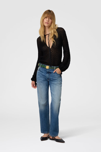 Eine elegante Damenbluse mit Tropfenausschnitt und raffinierter Raschelspitze im Rippenmuster. Das Modell aus einfarbiger Wollmischung vereint Eleganz und Struktur und sorgt für einen raffinierten, modernen Look, der sich perfekt für besondere Anlässe eignet.